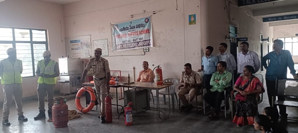 నందిపేట్ లోని ప్రభుత్వ పాలిటెక్నిక్ కళాశాల లో స్థానిక ఫైర్ స్టేషన్ సిబ్బంది మధుకర్, సురేష్, సిరాజ్ మరియు షఫీ అగ్ని ప్రమాదాల నివారణపై విద్యార్థులకు అవగాహన కల్పించారు. ఫైర్ సేఫ్టీ పరికరాలను ఉపయోగించే విధానం మరియు తీసుకోవలసిన జాగ్రత్తలు వివరించారు. ఈ కార్యక్రమంలో కళాశాల ప్రిన్సిపాల్ ఎస్. రాజ్ కుమార్, హెచ్ ఓ డి లు కిషోర్, లావణ్య, లక్ష్మణ్ శాస్త్రి, అధ్యాపకులు, కార్యాలయ సిబ్బంది మరియు విద్యార్థులు పాల్గొన్నారు.